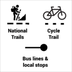 Enjoy our new interactive map. On it, you will find the location of the various geosites highlighted here, the places to stay and places to eat from our listings, the location of the local bus stops (more info here and on transport for Ireland for the schedules) and the locations of the various activities with more information here.