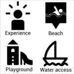 You can select which layer of information you want displayed or not (by default, they will all be displayed) by clicking on the layer’s name in the menu on the top left. You can find out the name and contact details of the business listed for accommodation, food and drink and experience and activities by clicking on their icons. Find out where you are and zoom in for more information using the navigation buttons on the top right.